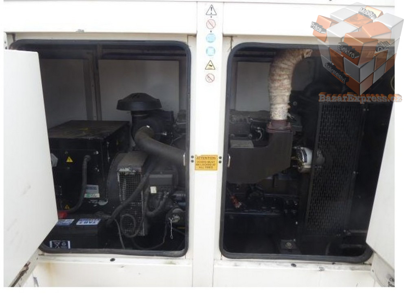 Dieselový generátor model 2005 o výkonu 100 kVA vyrobený společností FG Wilson, poháněný motorem Perkins. Takový generátor je určen pro aplikace, jako je záložní napájení budov a průmyslových zařízení, a byl vyroben podle britských a mezinárodních norem.